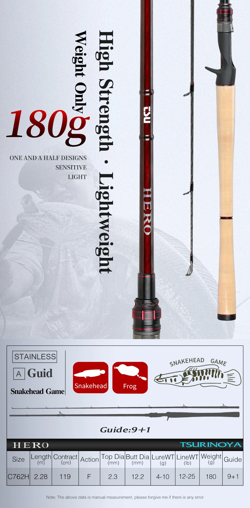 Отзывы о TSURINOYA жесткая кастинговая Удочка HERO C762H 2 28 м быстродействующая высокопрочная FUJI