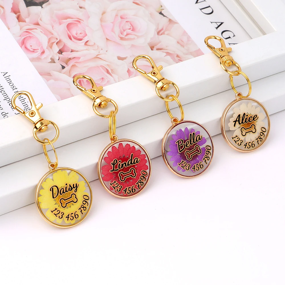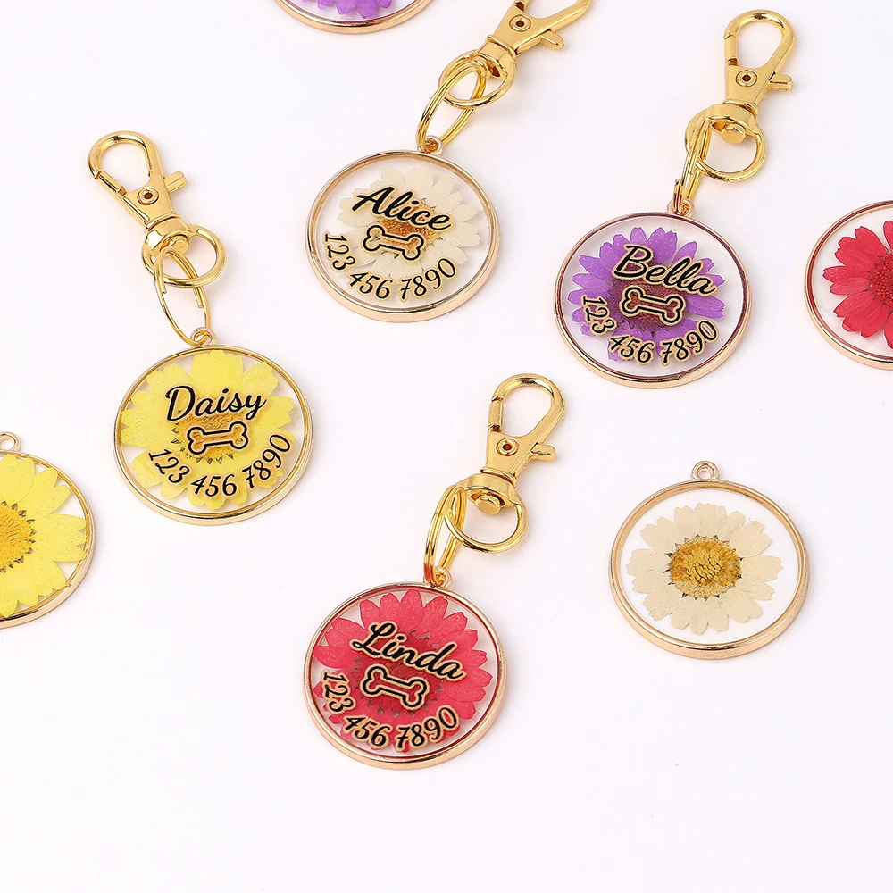 Название:Индивидуальные собаки кошки круглый ID тег портативный питомца милые бирки-цветы против потери Маленькие Средние Большие Собаки Воротник аксессуары бесплатно выгравированы