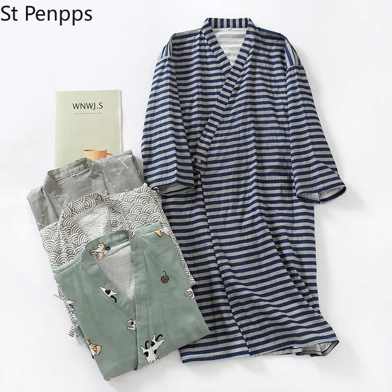 Отзывы о Мужская Хлопковая пижама тонкая ночная рубашка длинная японская традиционная