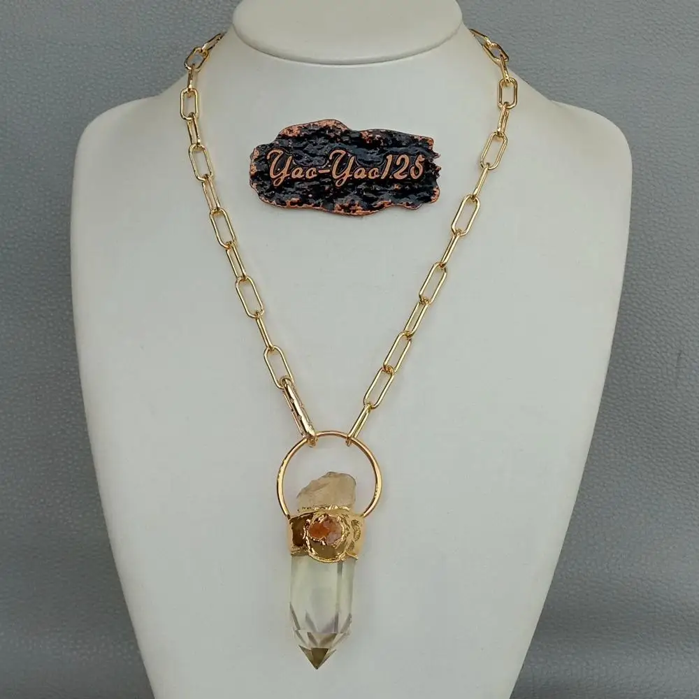 Информация о драгоценных камнями: граненый лимонный кварц и грубая цитрин Подвеска, хорошее качество, высокий блеск!