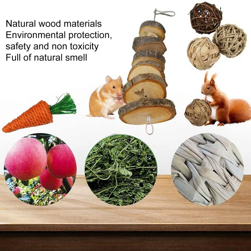 6 шт./компл. из цельного натурального дерева жевательная игрушка портативный молярный Набор принадлежностей способствует пищеварению кишечника для ChinchillasХарактеристики: