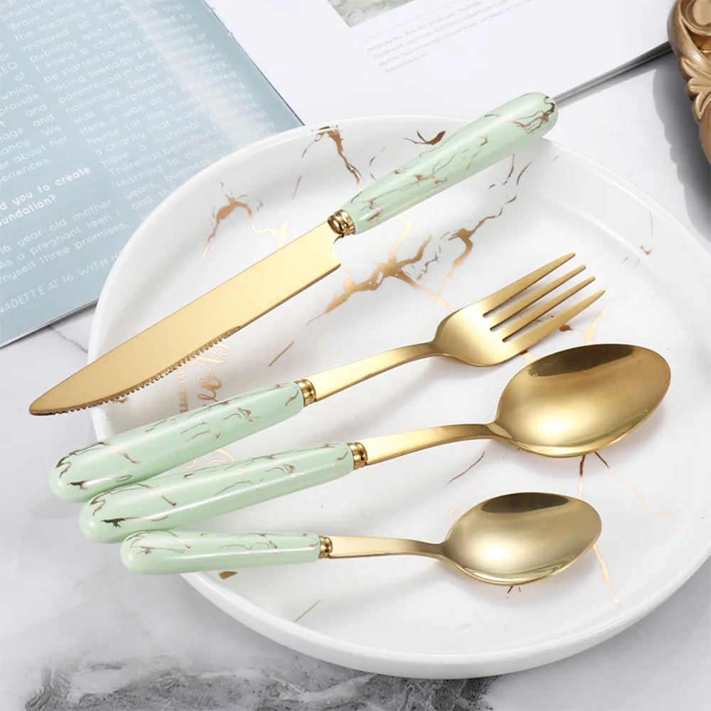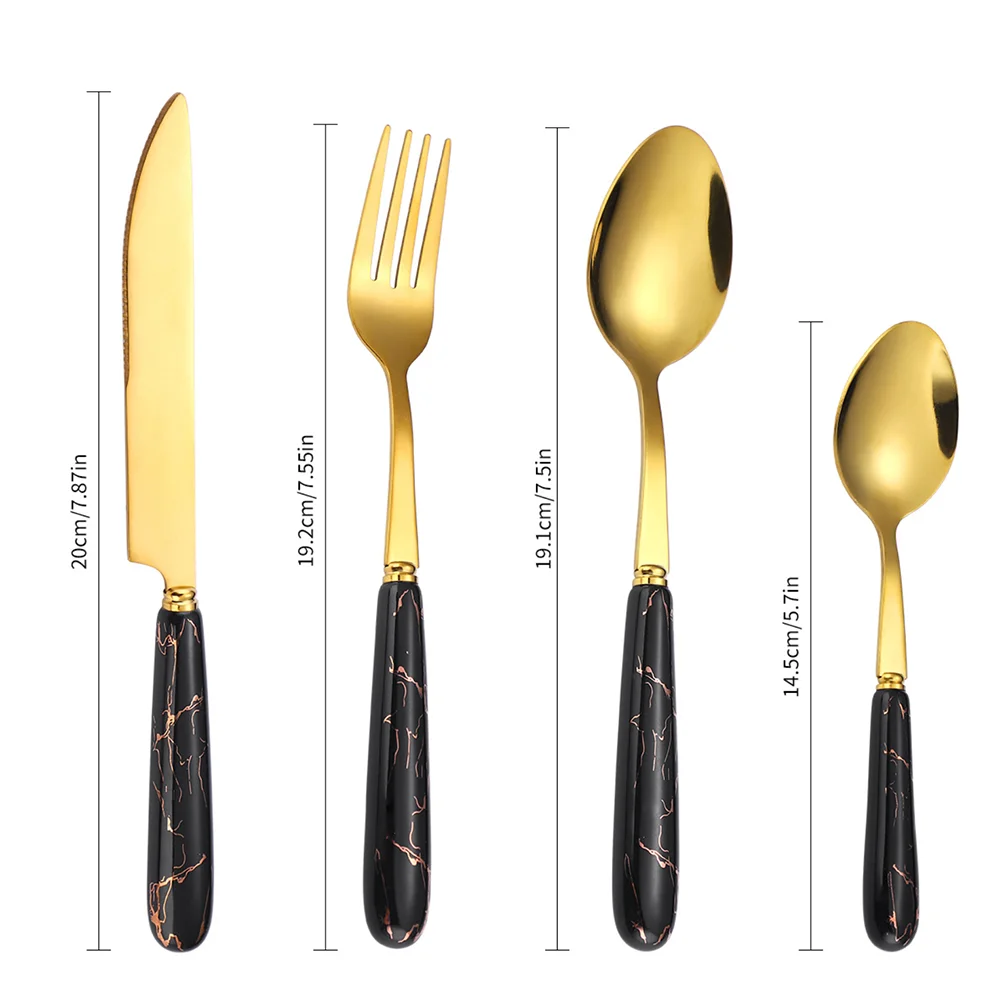 24 шт мраморный цвет ручка нож вилка ложка с кухонной утварью поддержка керамическая нержавеющая сталь позолоченные столовые приборы Подарочная коробка набор