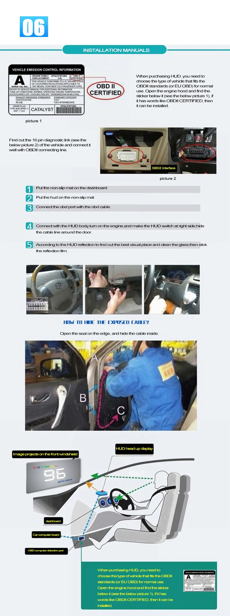7. Автоматическое включение/выключение: HUD Пуск и выключение автомобиля, эффективная защита автомобильного аккумулятора; Сохранение режима ручного переключения, более легкое управление HUD.