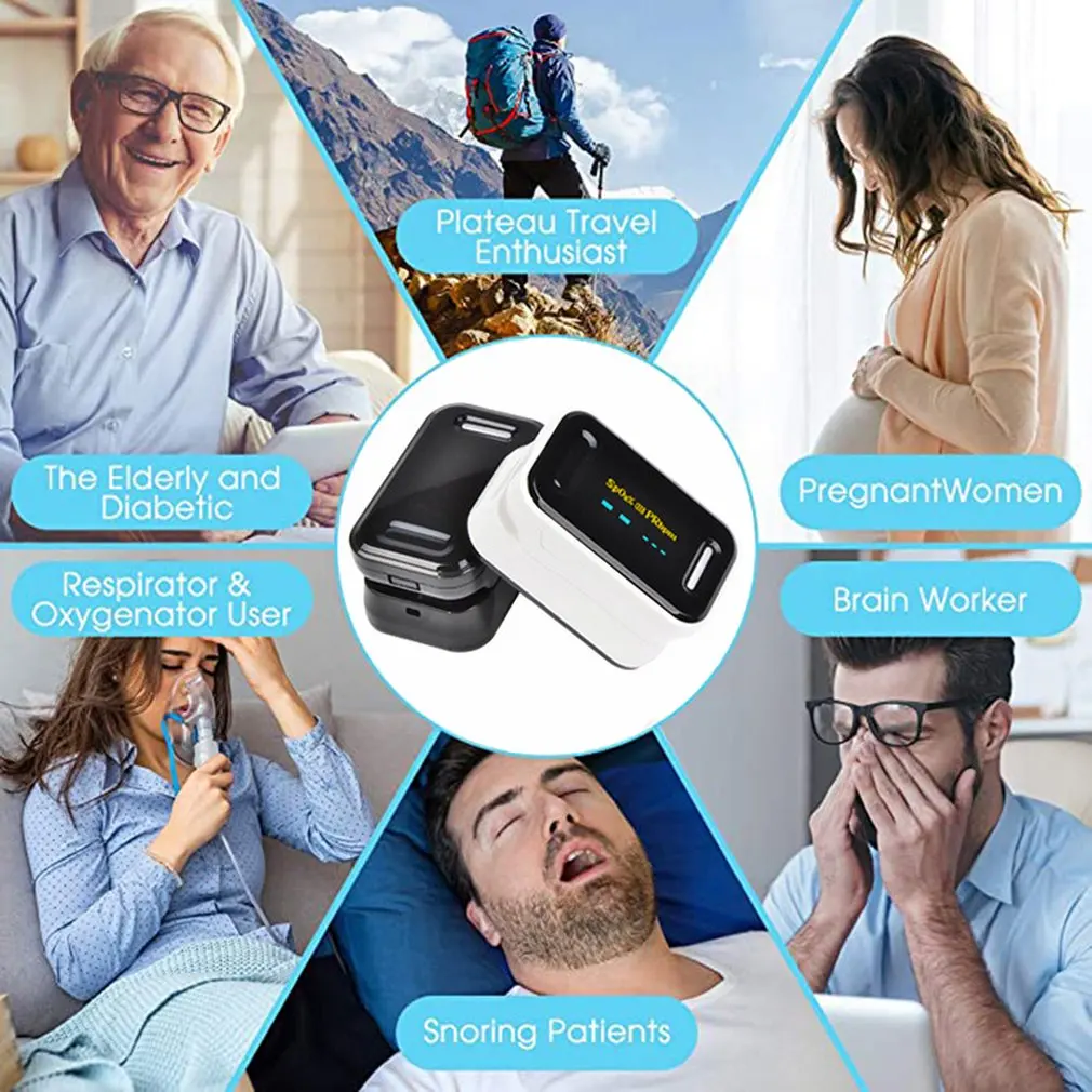 4. Портативный и простой в использовании-легкий и компактный, легко обрабатывать и носить с собой для результатов дома или на открытом воздухе. Пульсоксиметр предназначен только для спорта и авиации. Это устройство идеально подходит для использования во время спортивных занятий, таких как альпинизм, бег, езда на велосипеде и т. д.
