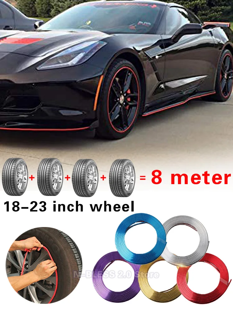 8 м многоцветная защита для ухода за шинами наклейки втулки для колес Перед установкой, Поверхность ободаЧистый, Так как эти продукты не позволят клею работать должным образом. Начните с только что вымытого колеса. Протрите поверхность обода чистыми спиртовыми салфетками Снимите ленту и прикрепите монтажную дорожку к ободу Режущая дорожка и защелкивающаяся цветная вставка в длину (ножницы для обрезки наковальни обеспечивают наилучший промывочный крой на треках и вставках) Используйте инструмент приложения, чтобы плотно прижать ленту колеса к колесу