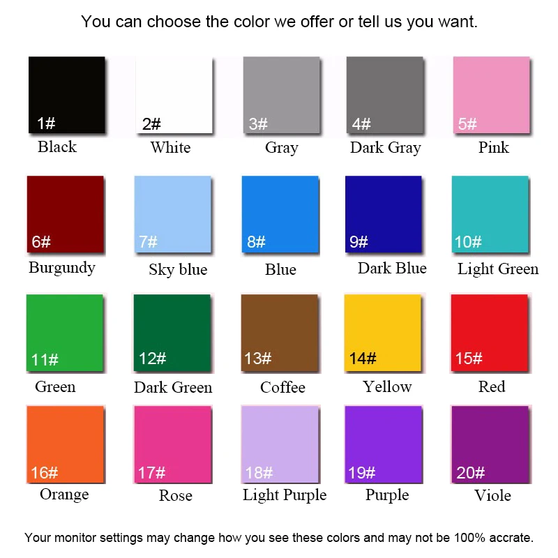 Если вы хотите выбрать другой цвет, пожалуйста, оставьте нам сообщение и укажите, какой, такими как отображение цветов #6, прежде чем делать заказ.
