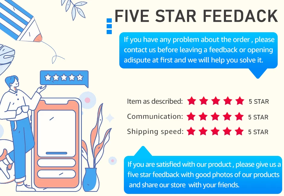Чтение для покупателя1Все продукты тщательно проверяются перед хранением и хорошо упаковываются для отправки. Пожалуйста, выберите правильный размер или цвет для того, что вы хотите, мы отправим посылку по вашему выбору в заказе. Для выбора более одного цвета, пожалуйста, оставьте сообщение о желаемых цветах, в противном случае мы вышлем Ваш заказ случайным цветом. 2Изображения продукта были сделаны в натуральной форме, для отображения, светильник, по причинам окружающей среды, может быть, s светильник явление отклонения, пожалуйста, в натуральной форме превалирует. Из-за ручного измерения возможна погрешность в 1-3 см. Пожалуйста, примите во внимание и убедитесь, что вы не возражаете, прежде чем размещать заказ. 3Обычно мы отправляем посылку в течение 48 часов после получения оплаты. Если Сделка находится в Гонконге и Китае, время передачи будет отложено, пожалуйста, поймите. Если вы хотите экспресс-доставку (EMS/DHL/FedEx/UPS), пожалуйста, свяжитесь с нами, мы рассчитаем почтовые расходы для вас, или вы можете проверить доставку и упаковку для справки. 4Все продукты упакованы вручную, может быть небольшая ошибка, если вы получаете неправильный товар или дефектный, пожалуйста, не стесняйтесь связаться с нами немедленно, мы компенсируем Вам, спасибо за понимание.