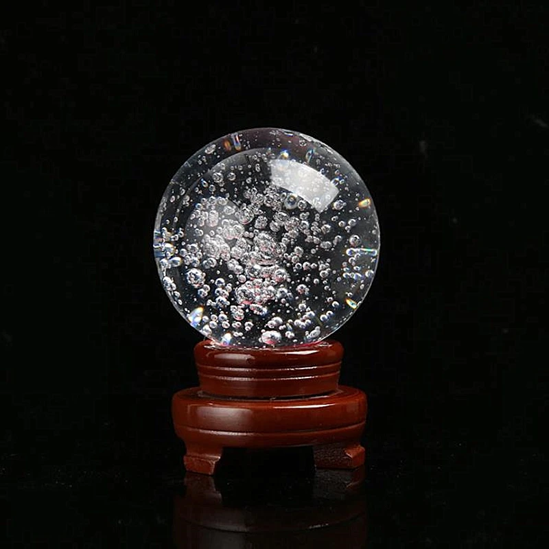 Название: хрустальный шарЦвет: прозрачныйРазмер: 30 мм-100 ммМатериал: Кристалл K9Мини заказ: 1 шт./лотИспользование: украшение для домашней свадебной вечеринкиВнимание: пузырьки выбираются случайным образом.Деревянная основа