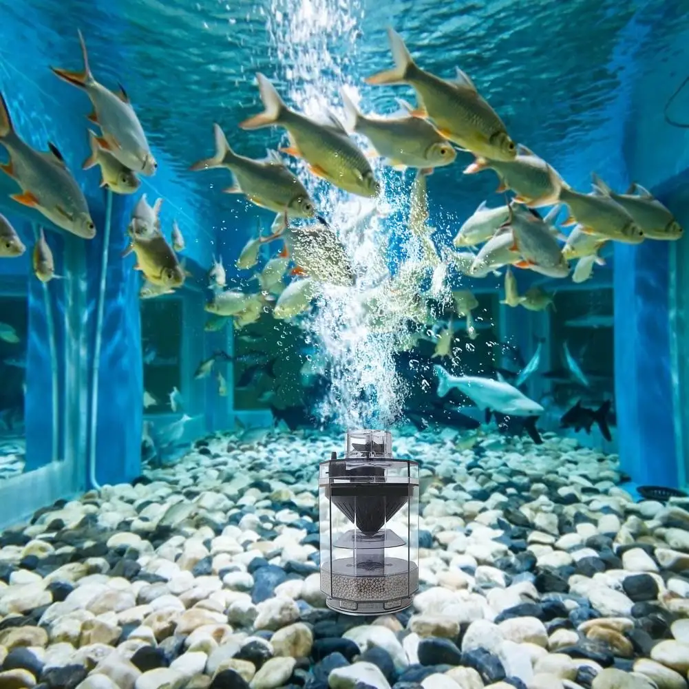 Простая установка: просто Подключите устройство к воздушному насосу и поместите его в аквариум. После того, как средний отсек заполнен рыбными отходами, просто удалите и очистите, прежде чем поместить его обратно в аквариум.
