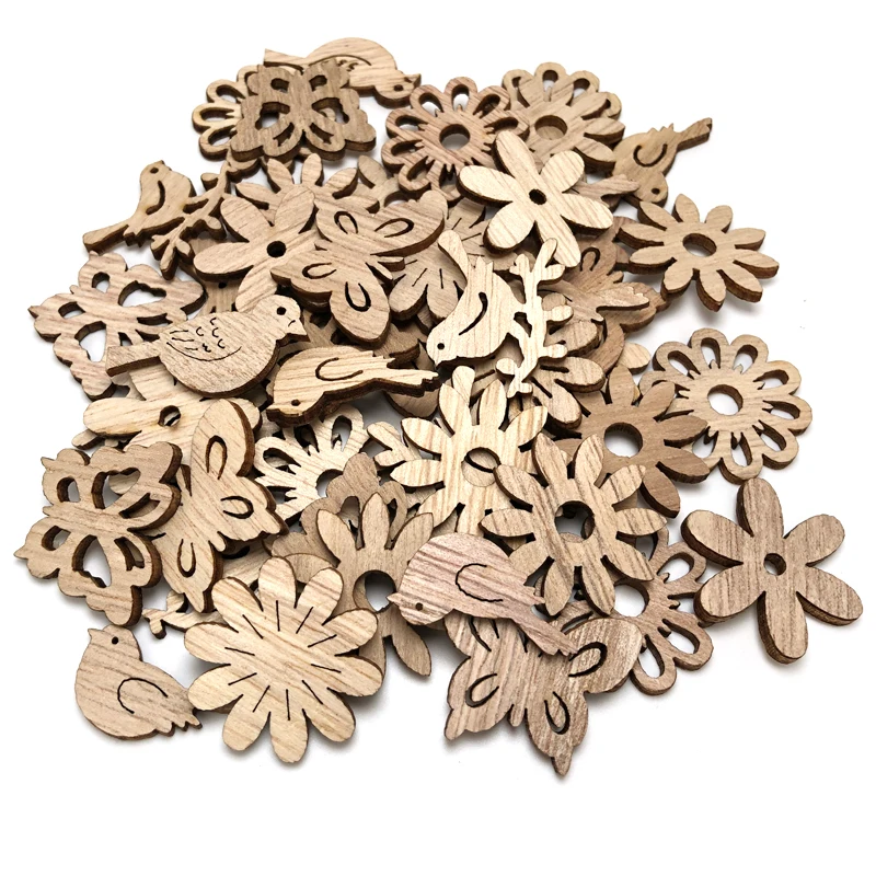 Отзывы о 25/50pcs Mix Natural Wood Chips Butterfly Flowers Wooden DIY Crafts Christmas Tree Hanging Ornaments Wedding Party Home Decor - купить по