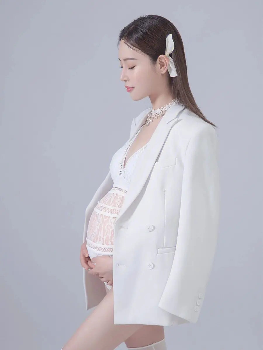 Отзывы о Белое Кружевное причудливое боди для беременных + пальто фотографирования