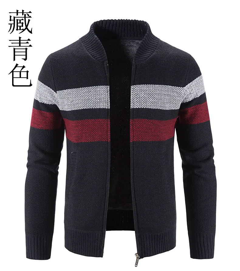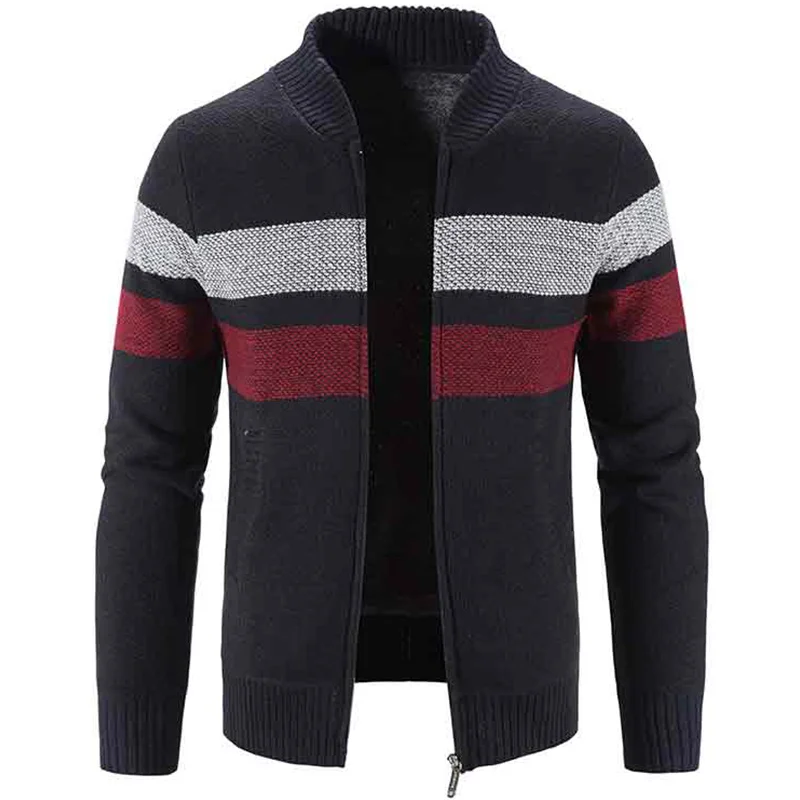 Отзывы о Зимний свитер с Бейсбольным воротником модное Полосатое пальто кашемировый
