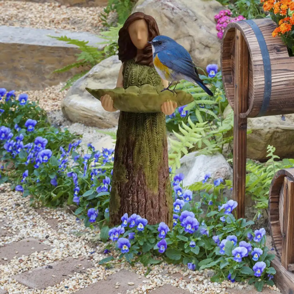 2. С Изысканным декором и элегантными природными элементами, наша сказочная статуя с кормушкой для птиц добавит красоты и очарования в ваш сад, цветочную кровать или пейзаж.