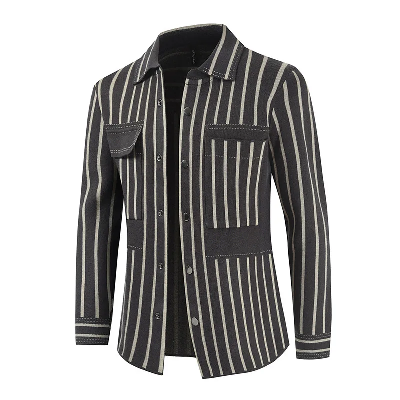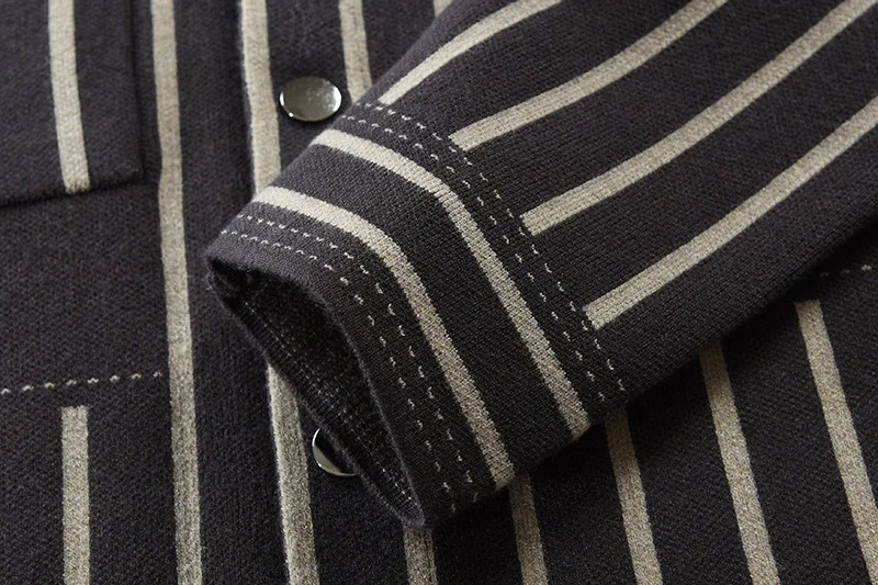 Мужской свитер в полоску на осень и зиму, повседневный Классический Простой свитер с лацканами и карманами, удобные мужские вязаные куртки с отворотом, LFFMHMT