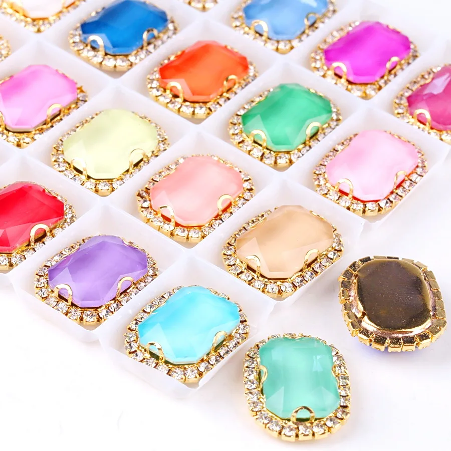 Желейные конфеты Стекло с украшением в виде кристаллов с Стразы цепочки из золотистого металла коготь настройки прямоугольной формы.