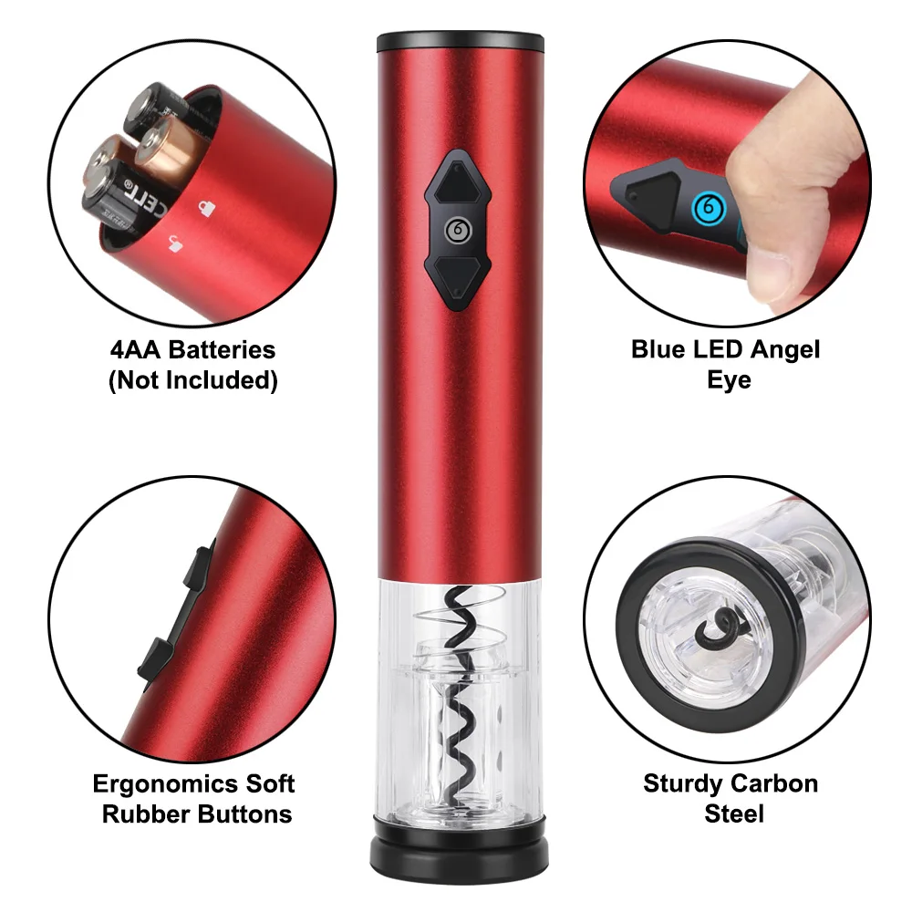 Автоматический штопор для вина удаляет пробку за 7 секунд-не нарушая пробку. Поставляется с фольга резак для легкого удаления фольги уплотнения с одним поворотом руки и может храниться в качестве базы для винного штопора.