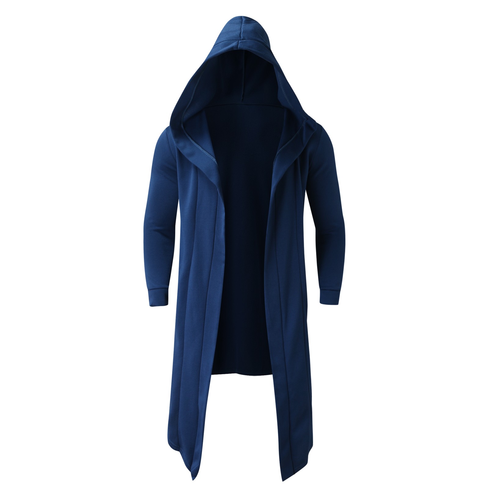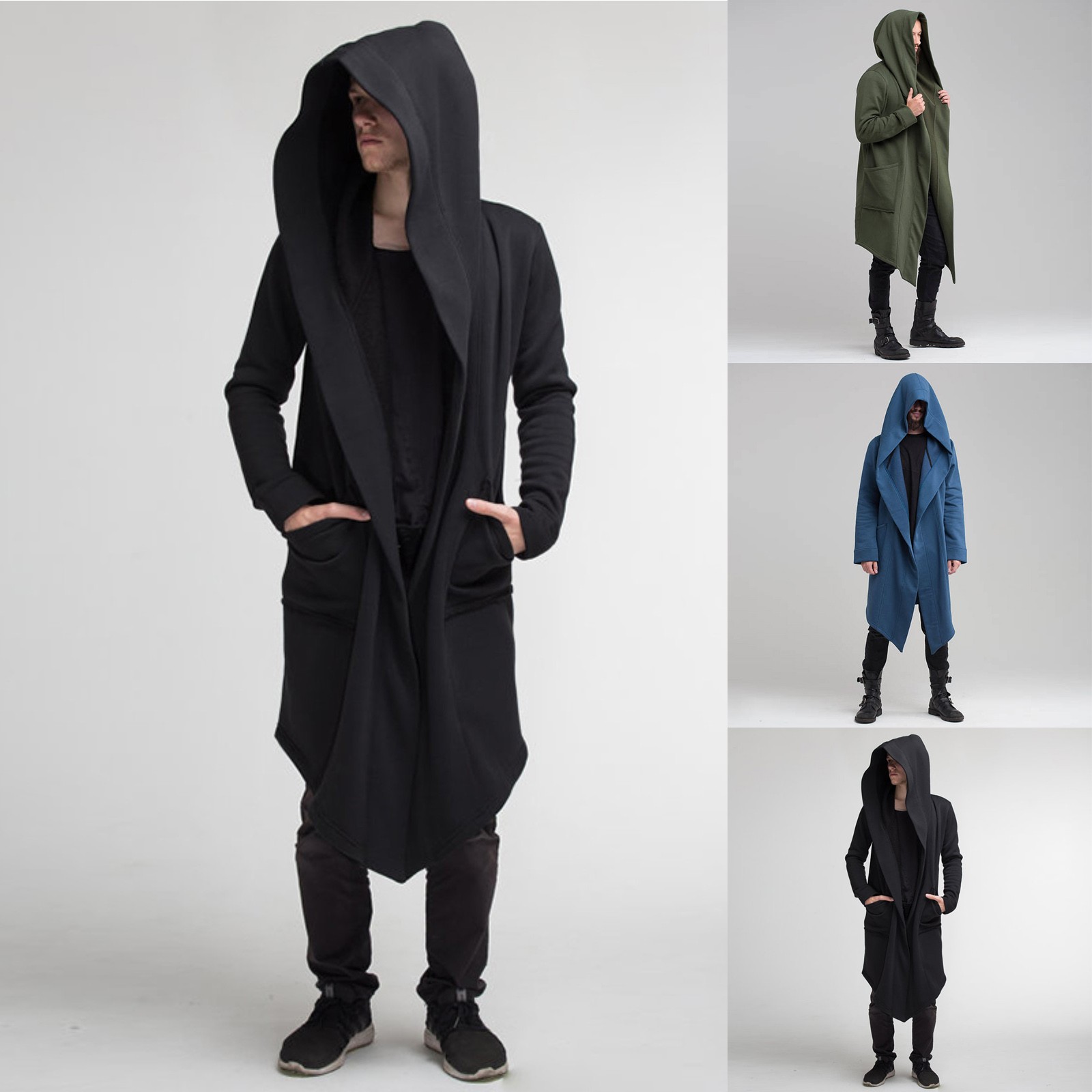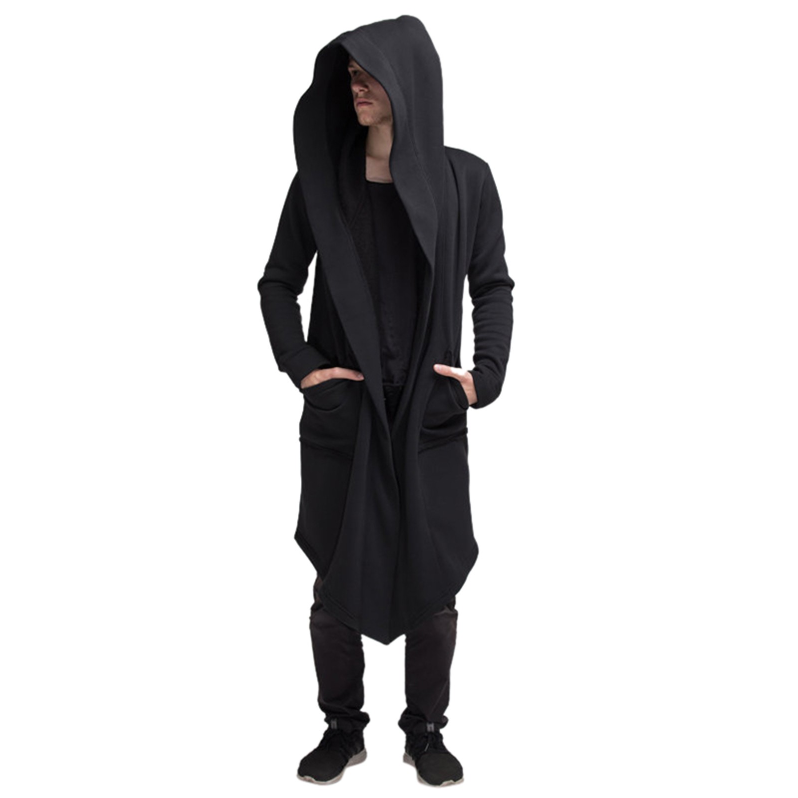 Мужская куртка в темном стиле, длинный кардиган, плащ, пальто, свитер с капюшоном