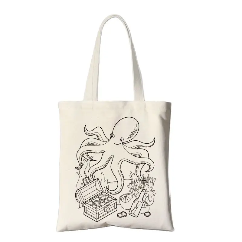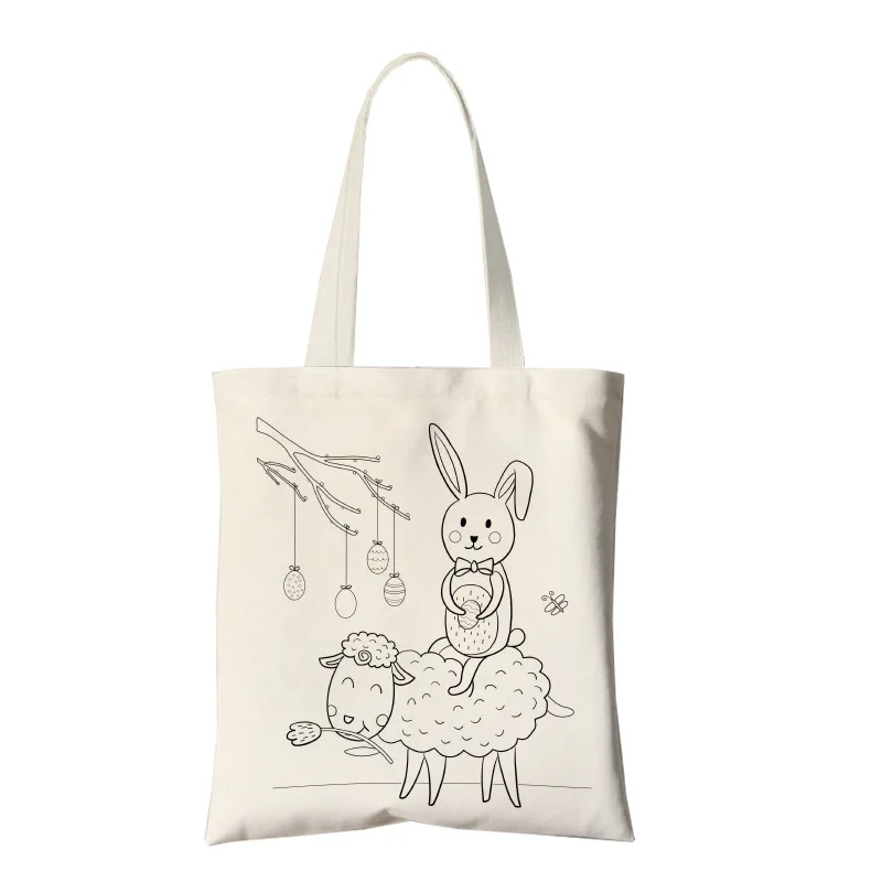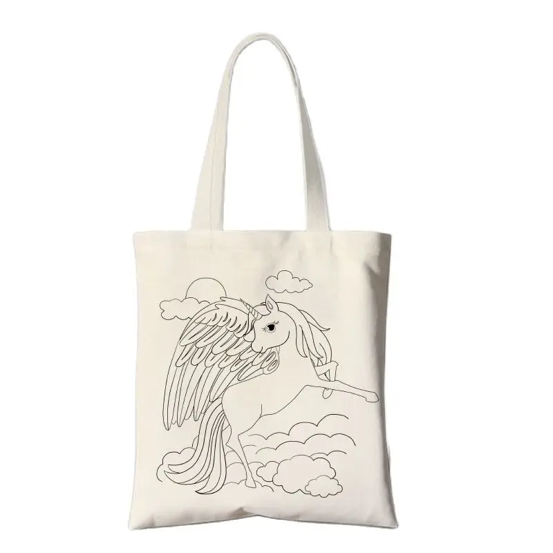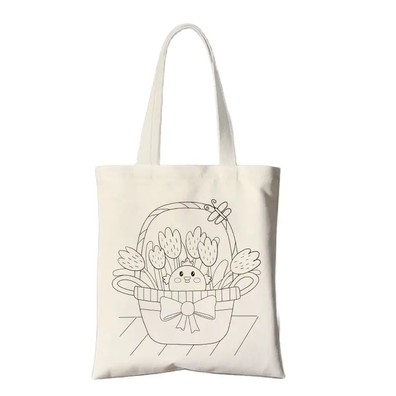 Ручная сумка для самостоятельного изготовления, экологически чистый холст, ручная сумка для детей, с индивидуальным логотипом, с кулиской, экологичный мультфильм