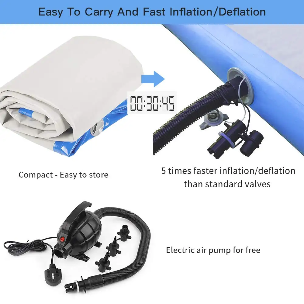 Примечание:1: Как фабрика, мы всегда настроены на размер, цвет, печать логотипа.2: Пожалуйста, обратите внимание, что импортные пошлины, налоги и сборы не включены в цену продукта. Если ваш адрес в отдаленной области, вам может потребоваться добавить дополнительные сборы.3. Из-за разницы в дисплее, пожалуйста, учитывайте разницу в цвете!4: насос включен. Характеристики:Максимальное давление: 15 PSI/0,7 барЭлектрический воздушный насос Цвет: черныйНапряжение: 110 В/220 ВМощность: 500 ВтВилка: штепсельная вилка США/штепсельная вилка европейского стандарта (Мы отправим соответствующий адаптер в соответствии с различными странами.) Электрический воздушный насос Руководство по эксплуатации:1. Используйте черную ручку, чтобы повернуть воздушный кран, чтобы закрыть режим, чтобы предотвратить утечку воздуха.2. Продолжайте надувать до тех пор, пока насос не получит резкий звук и убедитесь, что белая кнопка нажата.3. Прекратите надувать, поверните воздушный кран влево, Вытяните кнопку, затем выключите переключатель.4. Нажмите на кнопку, чтобы сдуть. Нажмите снова, чтобы остановить. Особенности:1. Электрический воздушный насос, надувание и сдувание производится в течение одной минуты.2. Коврик обеспечивает большую гимнастику и развеселить навыки.3. Легко переносится от тренажерного зала до тренажерного зала. Воздушный пол настолько светильник и небольшой, легко поместится на заднем сиденье вашего автомобиля.4. Установите в гостиной, на заднем дворе, на пляже, в любом месте.5. Бесплатный подарок Электрический воздушный насос, ножной насос и инструмент для ремонта Посылка1 надувной коврик1 надувной насос