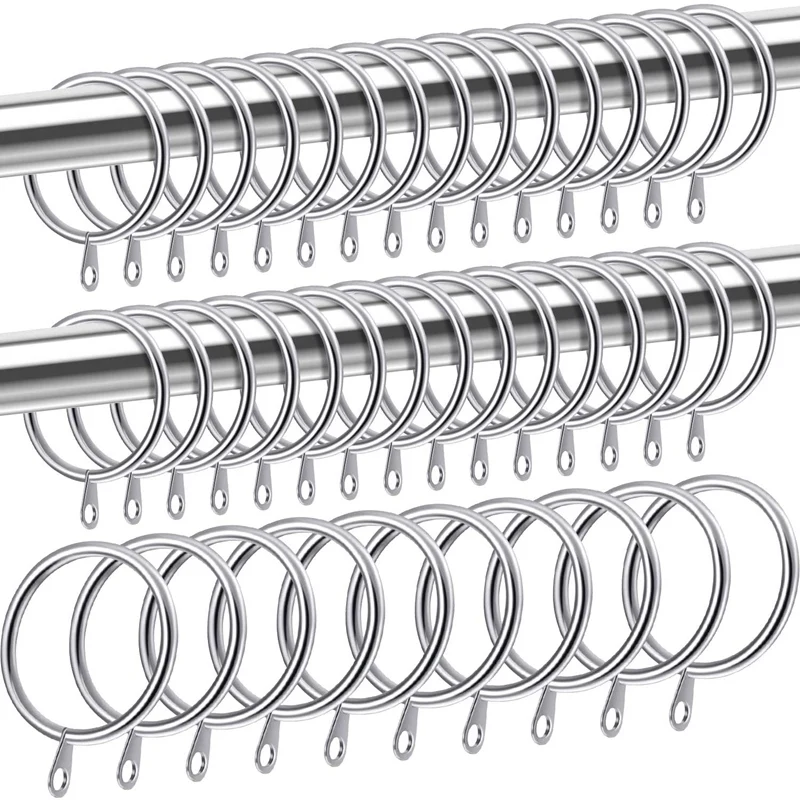 40 шт Металлическое кольцо для штор и палок, свисающее скользящее кольцо с ушками 32 мм Внутренний диаметр (серебро)