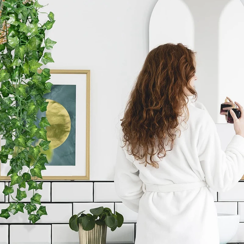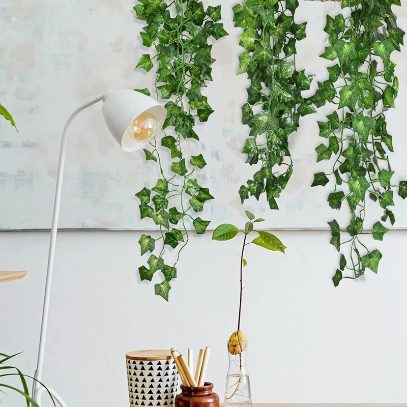 Легкая забота: искусственные лозы плюща выглядят как действительно сохраненные без необходимости ухода за поливом, не засыхают, не выцветают или не повреждаются, сохраняя свежесть в течение всего года. Может быть сплющена во время транспортировки, но это мило после того, как Аккуратно нажмите
