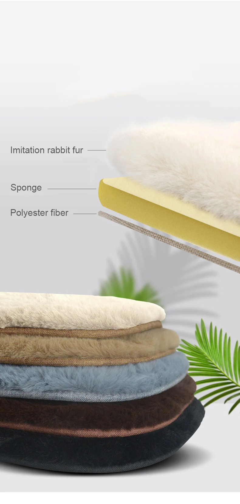 Ткань: поверхностный слой из искусственного кроличьего меха + внутренний слой из губки + ткань с кантом (полиэфирное волокно)