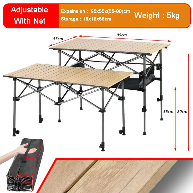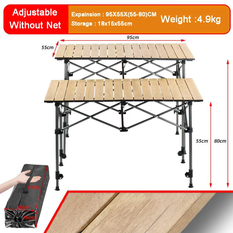 Складной столик для кемпинга, барбекю, портативный, регулируемая высота, деревянный стол, уличная мебель, легкий стол для пикника, пешего туризма Название: складной стол для яицМатериалы: дерево/алюминиевый сплавПохожие товары