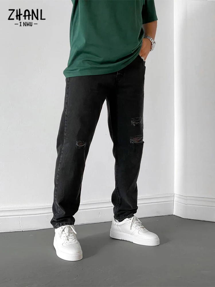 Отзывы о Модные свободные черные джинсы с дырками мужские рваные прямые джинсовые