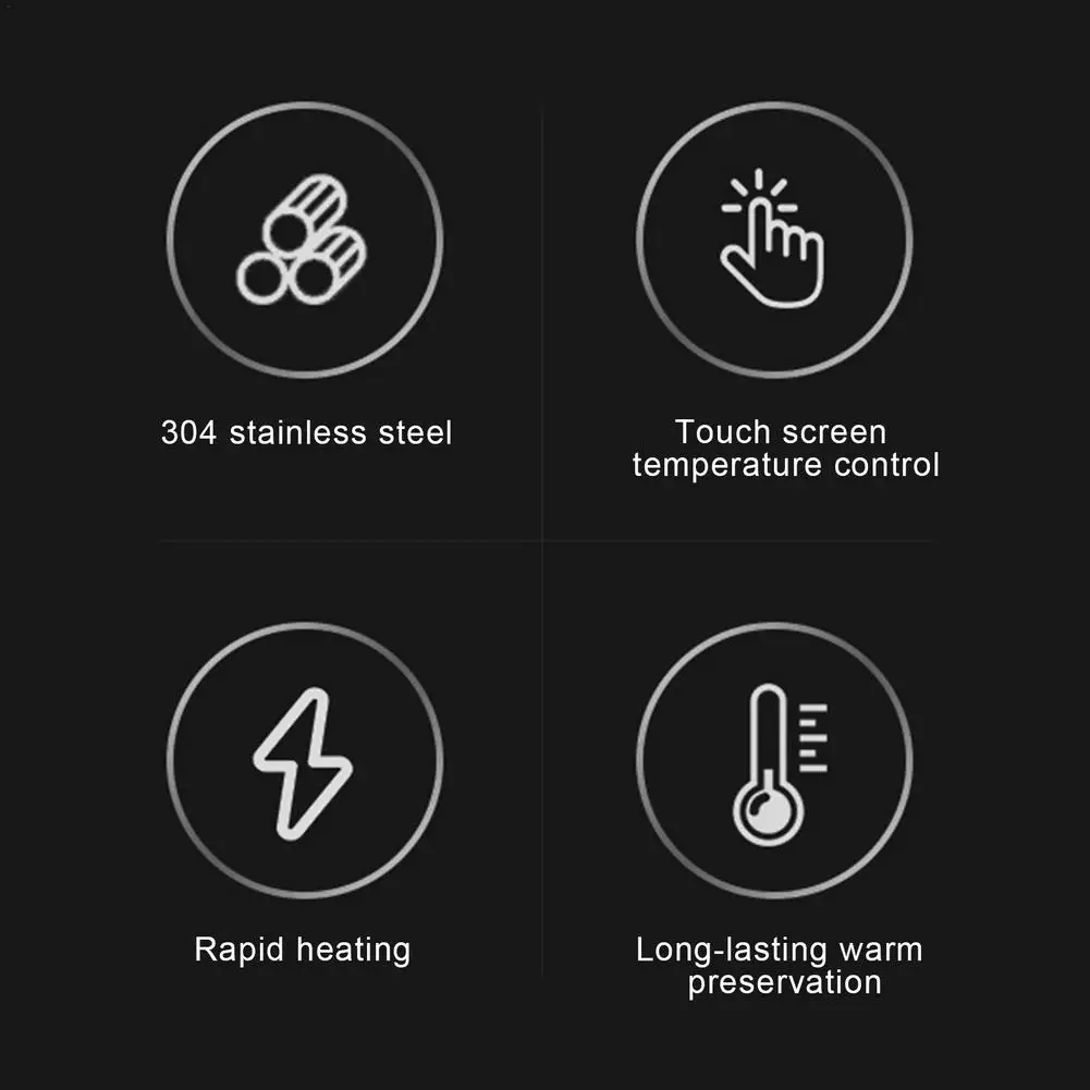 3. Чувствительный контроль температуры: это чашка с чувствительным датчиком температуры, светодиодный дисплей температуры и нагрев, и кнопки управления сохранением тепла, позволяет узнать температуру жидкости в чашке в любое время и в любом месте. Температуру жидкости в чашке можно регулировать и поддерживать в соответствии с личными предпочтениями.