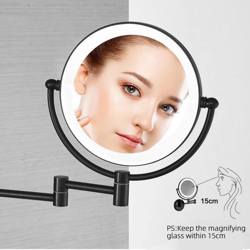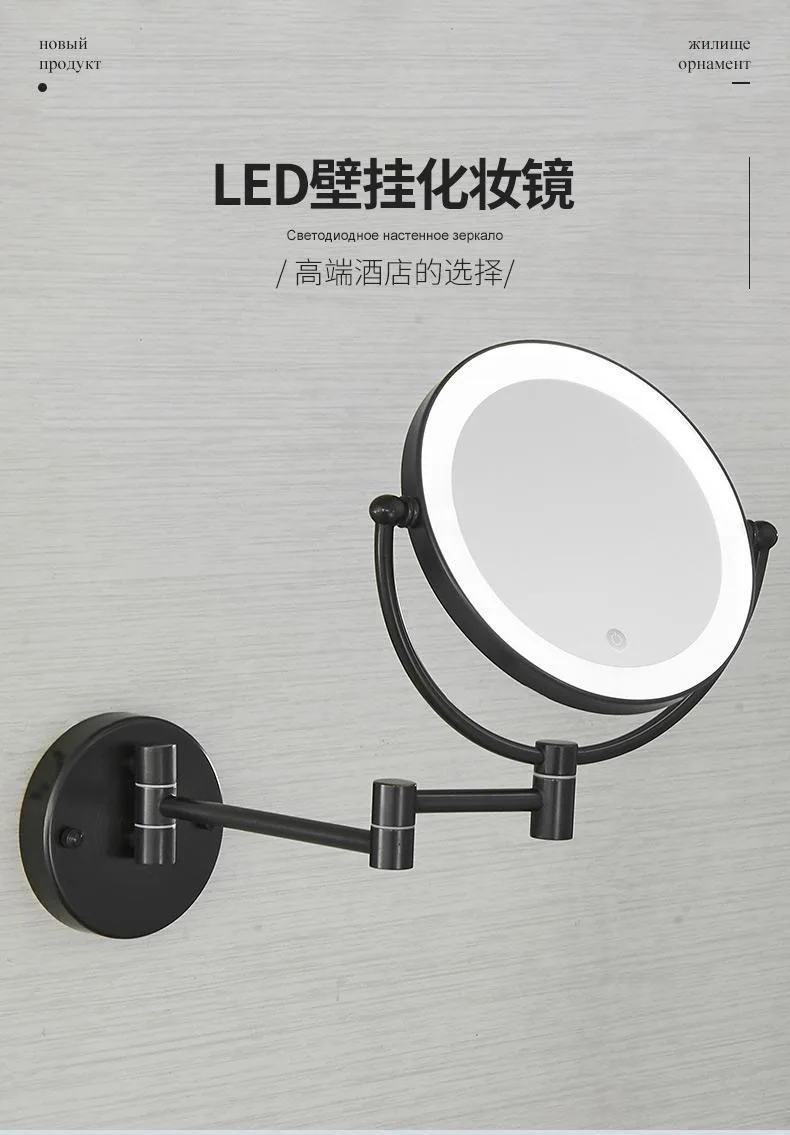 8 дюймов настенное матовое черное зеркало для макияжа 3X увеличительное двухстороннее складное зеркало USB зарядка ванная комната Смарт косметическое зеркало
