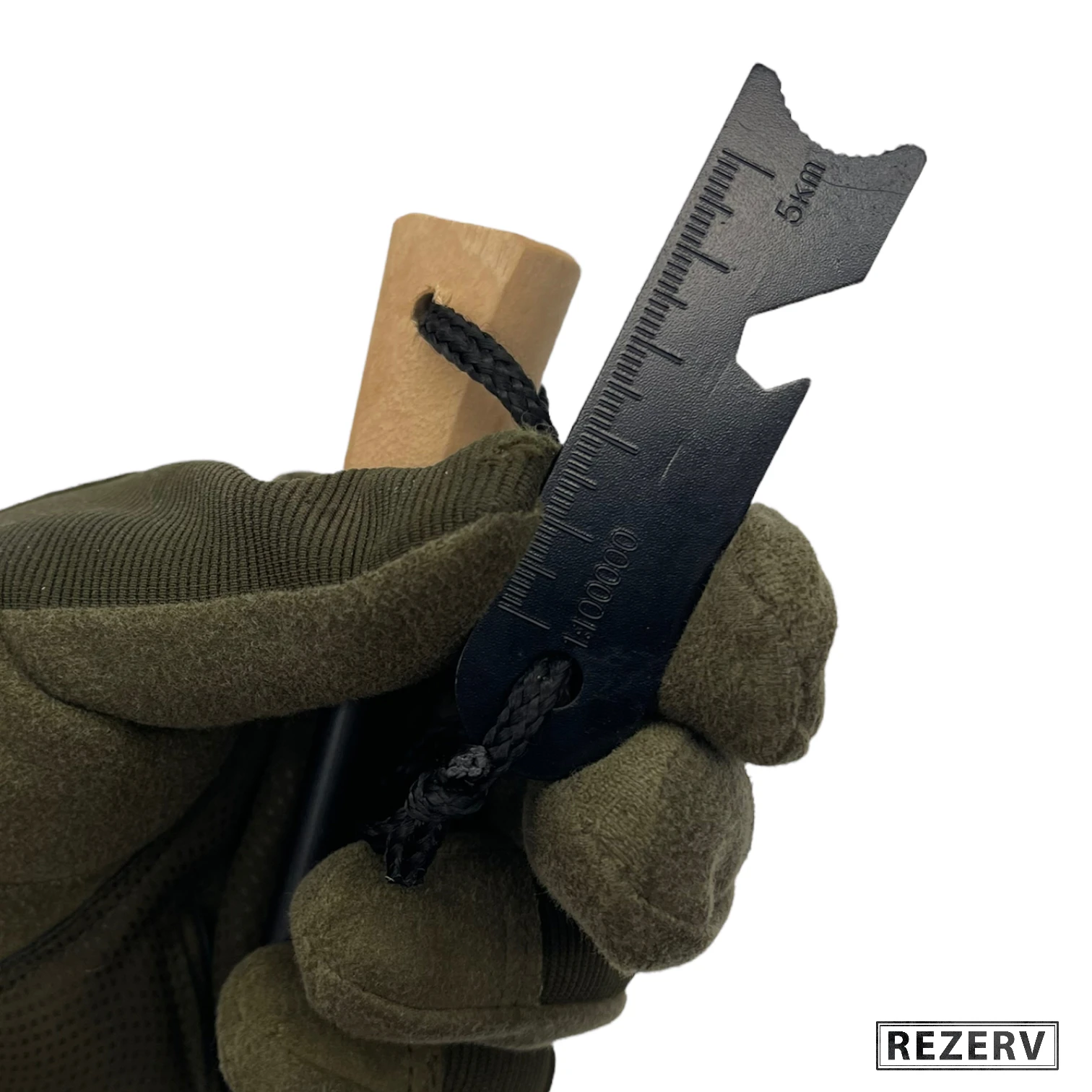 Многофункциональное кресало включает в себя: линейку 5 см., Масштабную линейку до 5 км., открывашку для бутылок и гаечный ключ.
