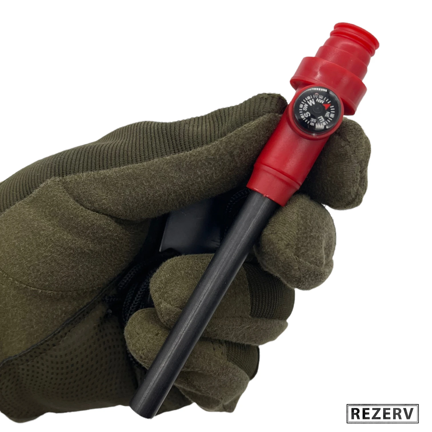 № 13 Огниво + свисток + компас, комплект (7 см), красная ручка