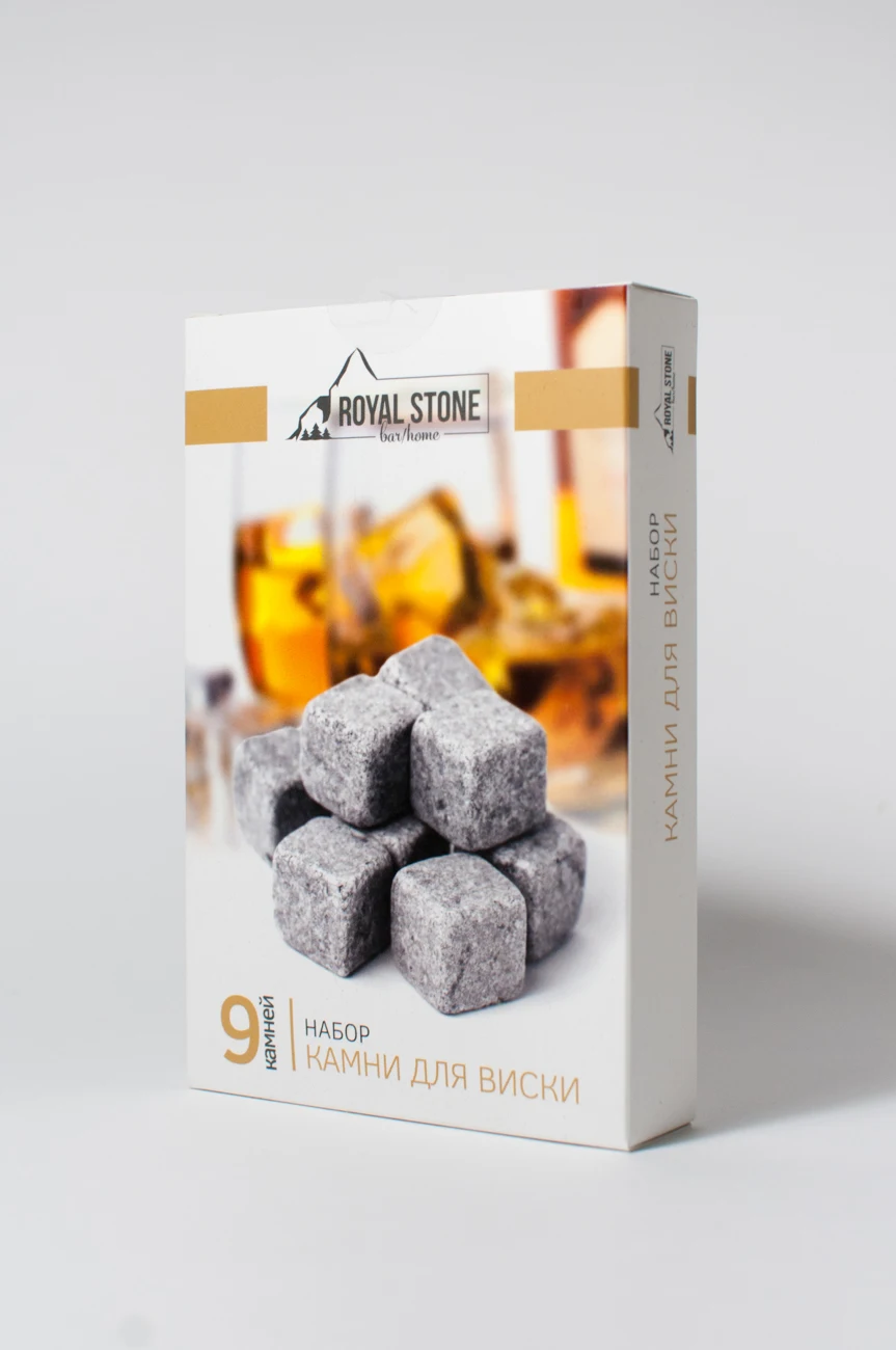 Камни для виски используются как замена льду. Обладают рядом преимуществ, главное из которых что камни, в отличии ото льда, не тают и не растворяют собой вкус напитка. Пользоваться очень удобно, камни хранятся в морозильнике и добавляются по мере надобности. Материал — стеатит (или мыльный камень). Обладает высокой теплоёмкостью, быстро нагревается и медленно охлаждается. Поэтому его можно использовать не только для охлаждения виски, но и для поддержания температуры у горячих напитков!