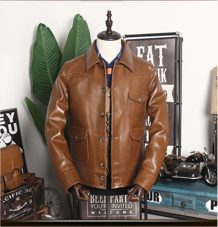 Отзывы о Мужская повседневная однобортная куртка коричневая короткая приталенная из
