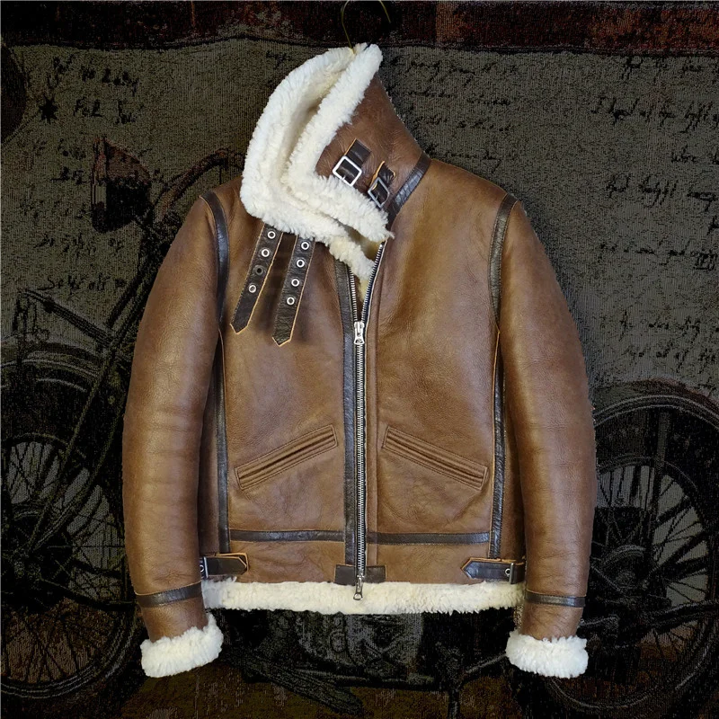 Отзывы о Темно-коричневая куртка-бомбер B3 в стиле милитари из натуральной овечьей шкуры
