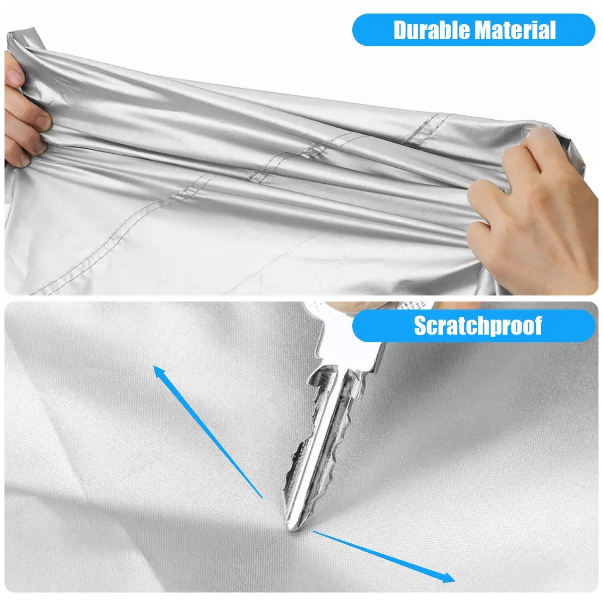-Изготовлен из полиэфирной ткани высокой плотности с серебряным покрытием, может повысить Водонепроницаемость и защитить поверхность транспортного средства от царапин, серебряное покрытие автомобиля не повредит краску.