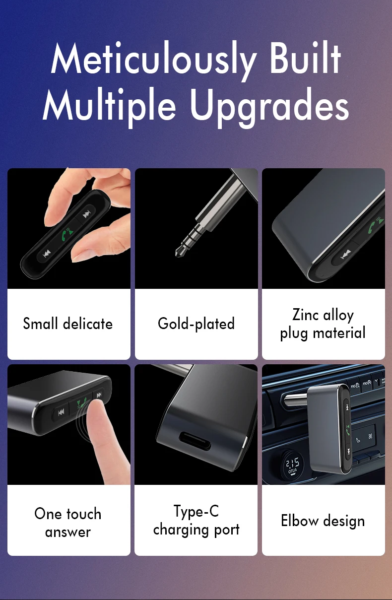 Использование автомобиля, Handsfree, аудио соединение, умный чип, цинковый сплав, Bluetooth 5,0, навигация, маленький, HD качество звука