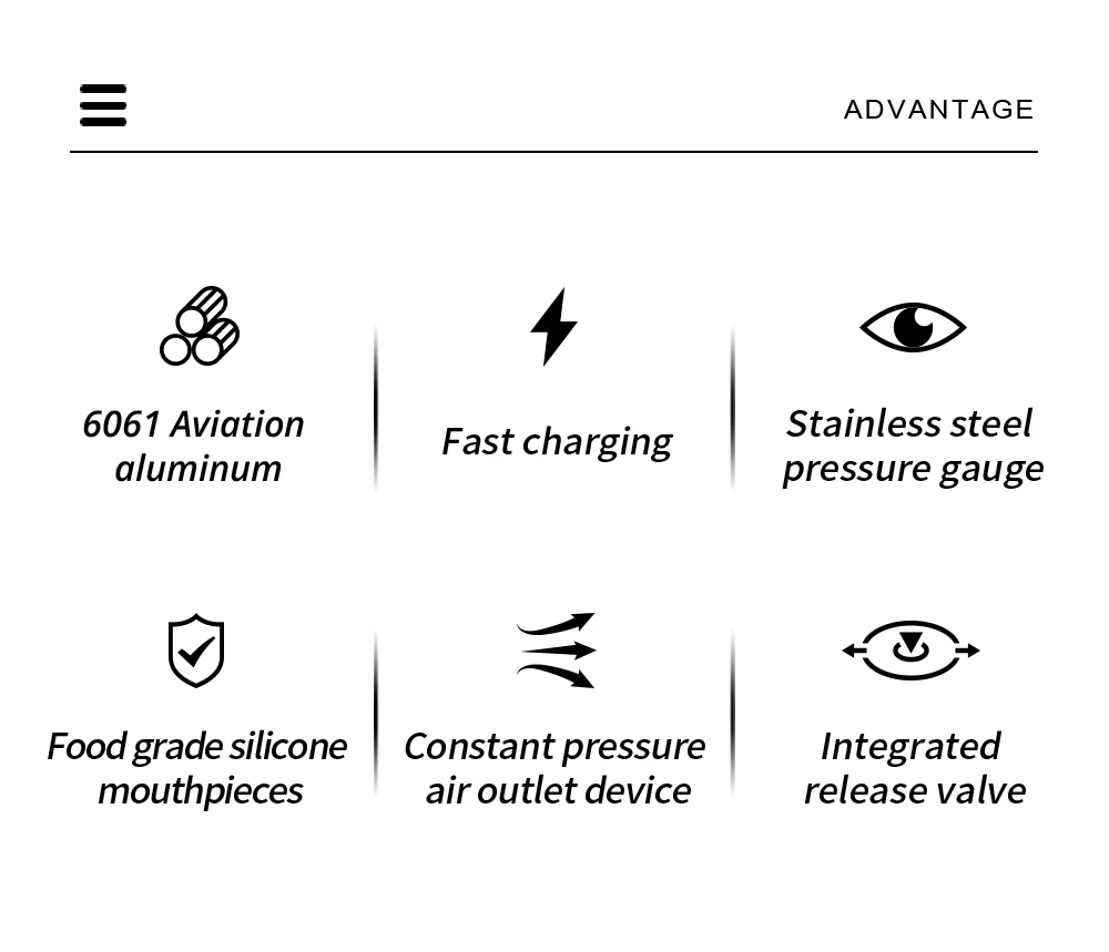 Бак для дайвинга имеет емкость 0,5л и используется для 170 подводных Дыханий при полной емкости. Он используется для 5-10 минут погружения. Вес продукта составляет 2,38 фунтов, что позволяет легко использовать его под водой.