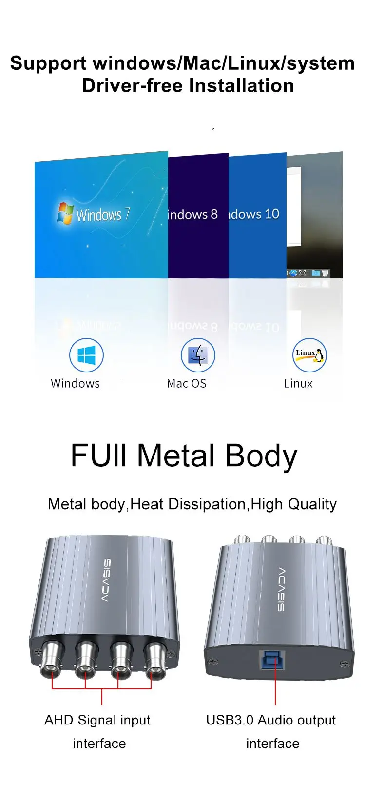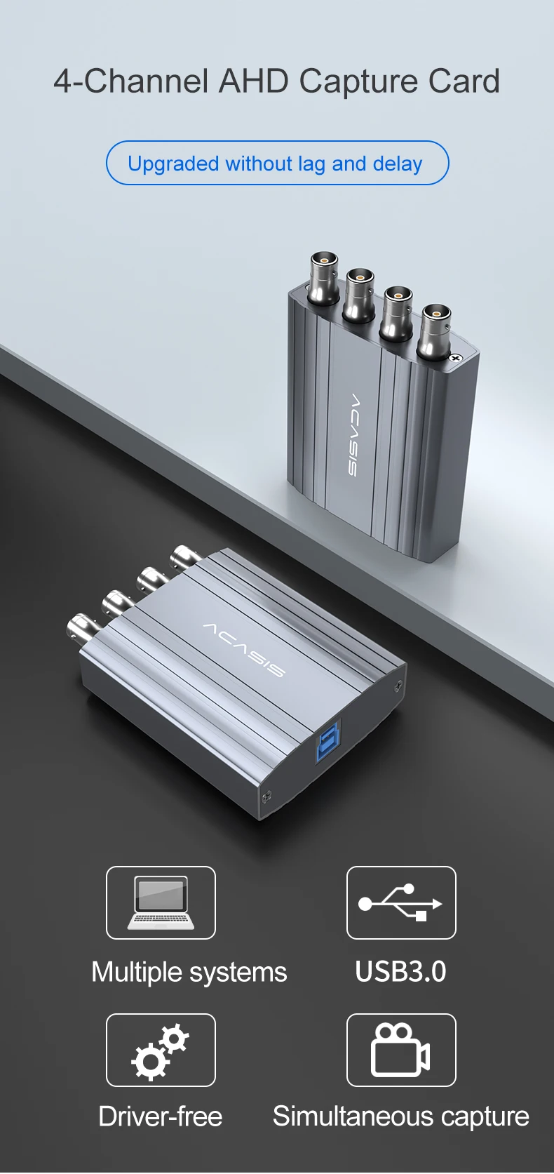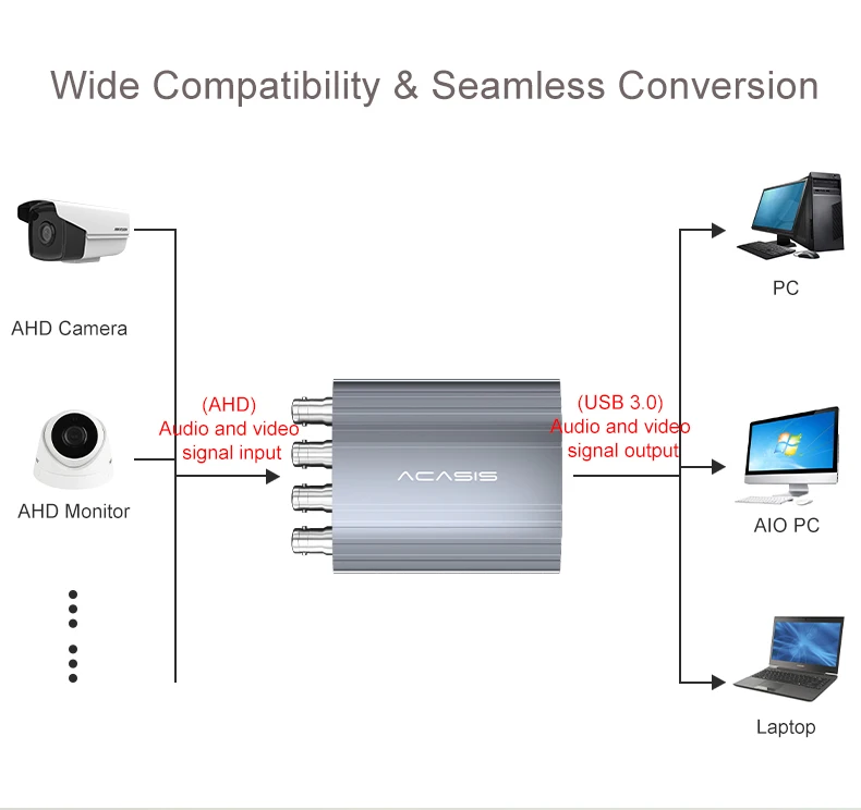 Отзывы о Acasis 4-канальная карта захвата AHD USB 720P 30 кадров в секунду коробка для записи видео