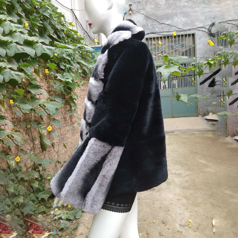Отзывы о Q.FURDREAM индивидуальное Полосатое натуральное Женское пальто с цветными манжетами