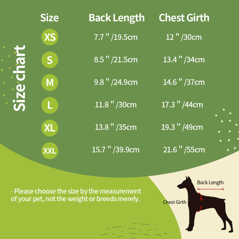 Подходит для использования в помещении и на открытом воздухе круглый год. Можно использовать в качестве милой пижамы или повседневной основной одежды. Чтобы выбрать подходящий размер, пожалуйста, тщательно измерьте свою собаку перед выбором размера. Если ваша собака находится между двумя размерами, мы рекомендуем вам купить больший размер.
