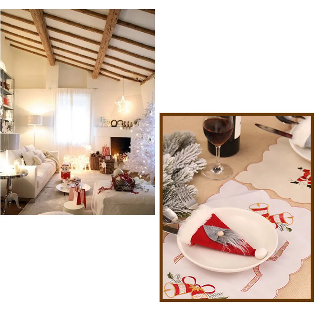 * Эти маленькие рождественские аксессуары можно использовать для хранения столового серебра, чтобы добавить приятное прикосновение к обеденному столу на вечерние праздники, чтобы каждый мог наслаждаться теплом и веселым временем еды. Не только использоваться в качестве украшений для подвесок на елках, винных бутылках, стенах и т. д., но и для защиты посуды.