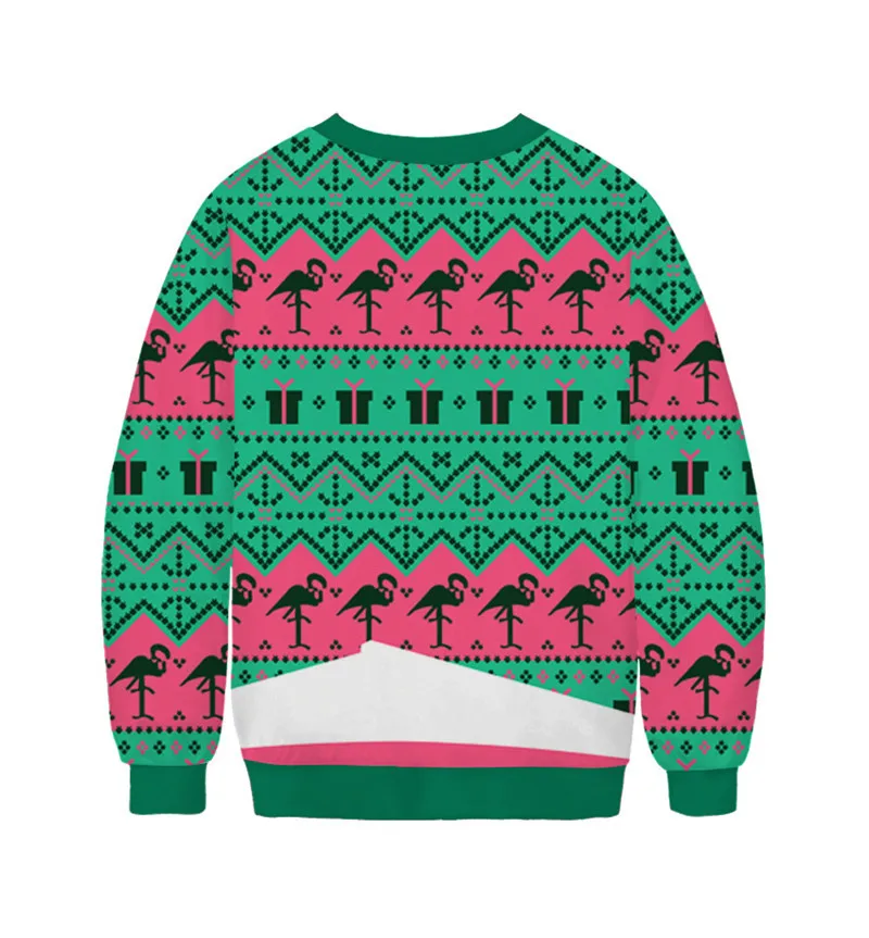 Пуловер для мужчин и женщин, Уродливый Рождественский свитер с принтом «Фламинго», 3D Забавный принт, осенне-зимняя одежда, рождественские Джемперы, топы, праздничная Толстовка