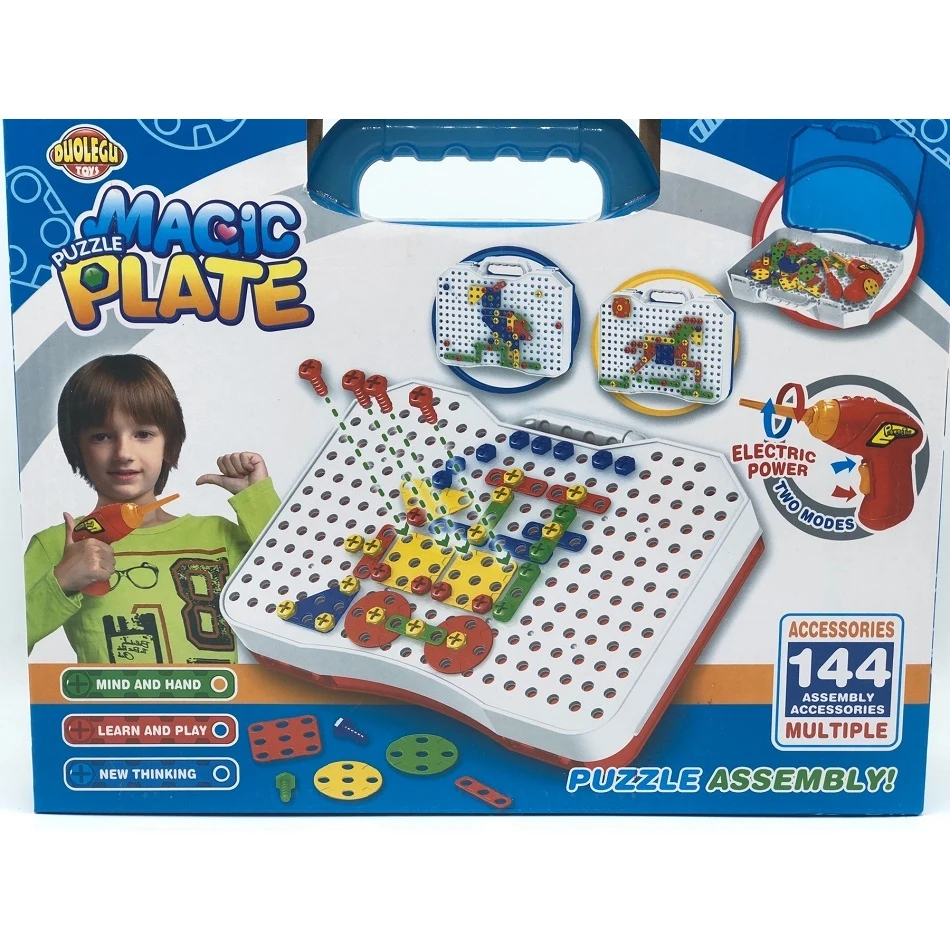 Развивающая мозаика-конструктор с шуруповертом на батарейках и отверткой. 144 деталей
