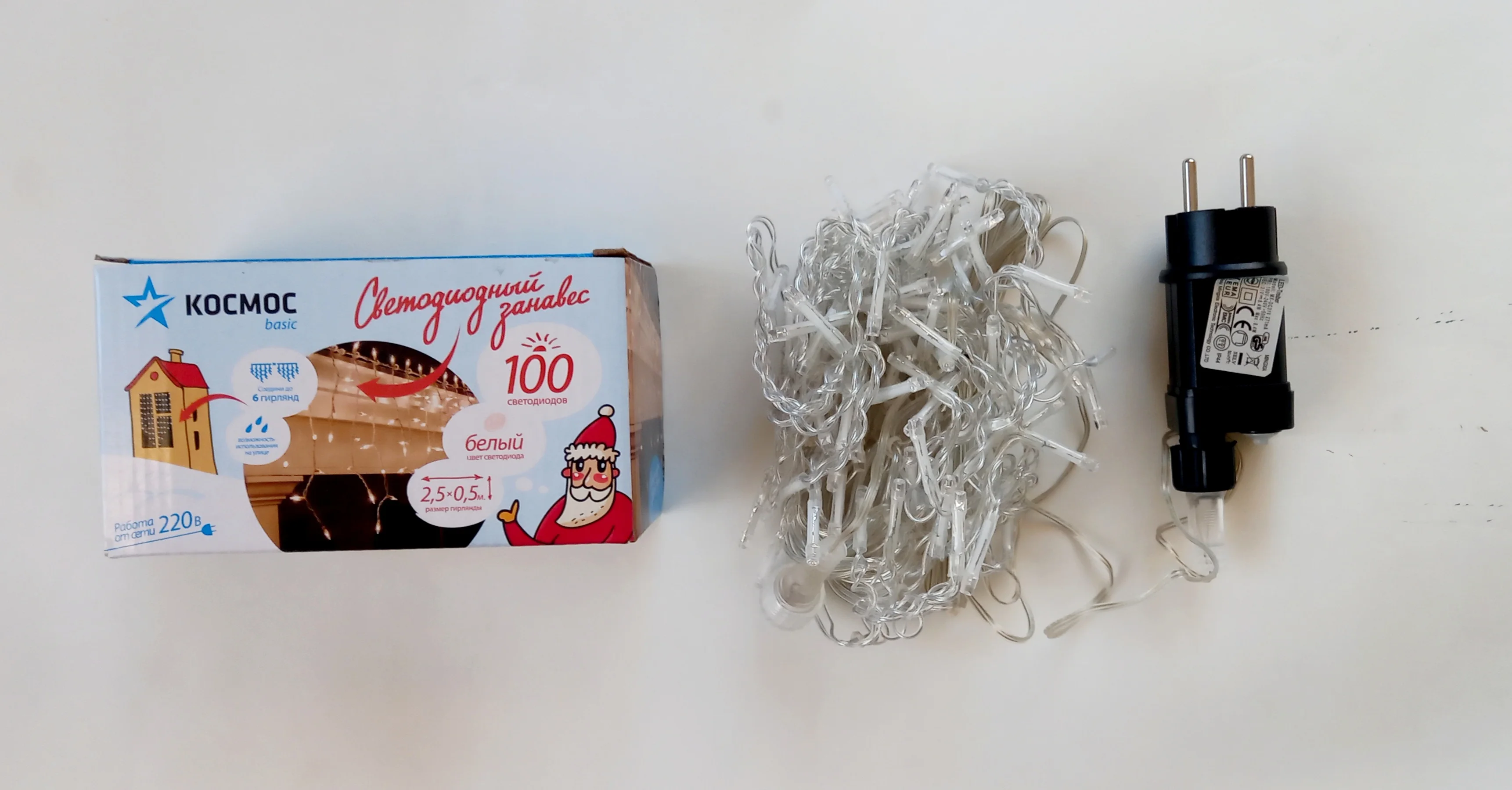 Уличная светодиодная гирлянда "Космос" koc_cur100_w_ip, белая, бахрома. Главным преимуществом такой гирлянды является светодинамические эффекты, создающие иллюзию занавеса из света различных цветов. Отлично подойдёт для украшения окна или стены создаст праздничную атмосферу и наполнит ваш дом радостью и позитивной энергией. Предусмотрена возможность последовательного подключения гирлянд. Провод гирлянды прозрачного цвета оснащен прямоугольным контролером с кнопкой для переключения восьми режимов. Максимальное количество гирлянд, подключаемых в одну цепь: 6. Цвет свечения: белый. Размер гирлянды: 2 х 0,5 м. Входной ток: 180-240 b, 194 ma. Выходной ток: 31 v, 6 va, мощность 6 w. 8 режимов свечения: combination комбинированный, in wales «волна», sequentian последовательный; slo-glo мягкое свечение, chasing/flash «чеканка»/вспышка, slow fade медленное затухание, twinkle/flash мерцание/вспышка, steady on постоянный.