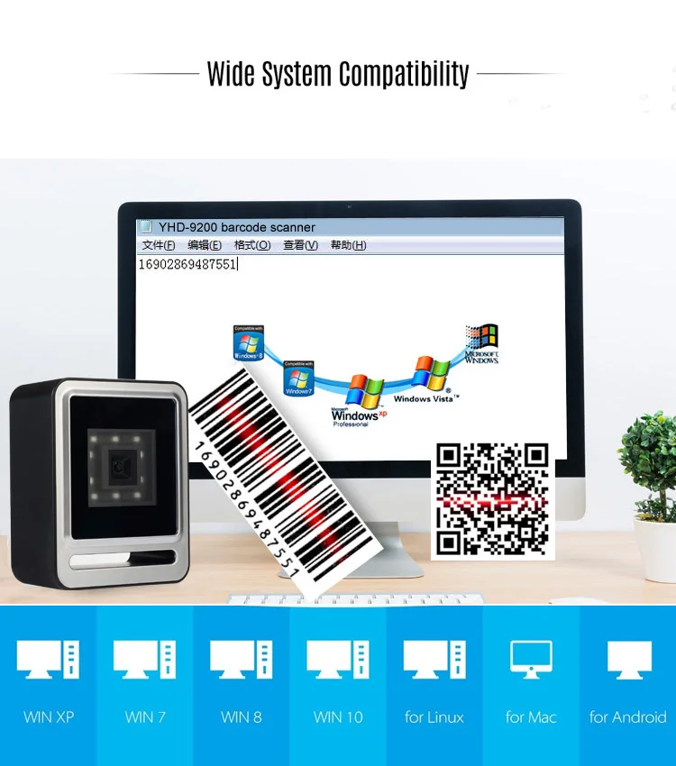 2D проводной сканер штрих-кода CMOS может подключаться к pos-системам, ноутбукам и ПК-компьютерам.