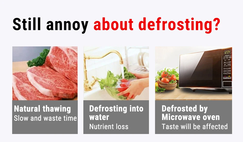 Сбоку с полосками, это тарелка для разморозки, используемая для разморозки замороженного мяса. Это может уменьшить время размораживания на 50% и сохранить Оригинальное питание и вкус.