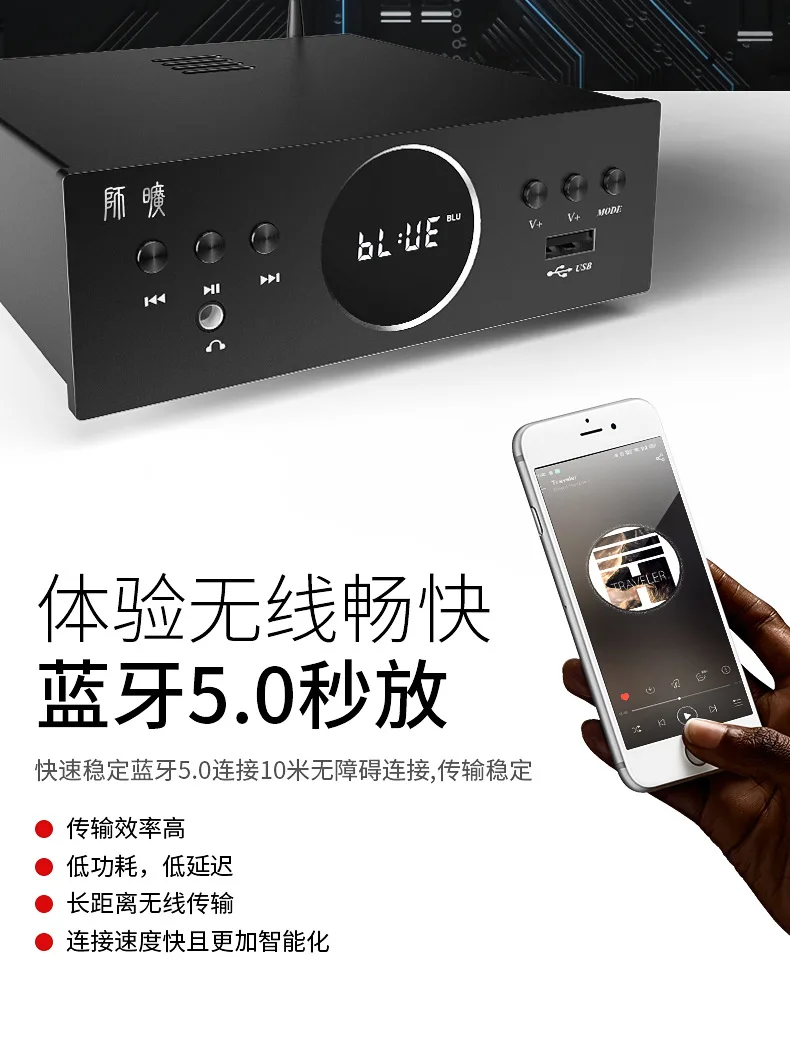 Чипсет: микросхема мини-усилителя использует DAC IC(ESS9038) и USB IC(CT7601), чтобы обеспечить надежную гарантию на тональный вход и выход.