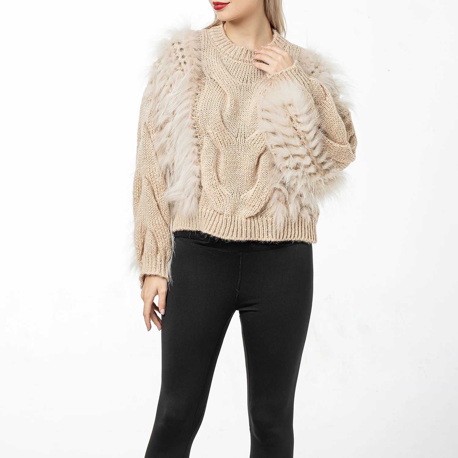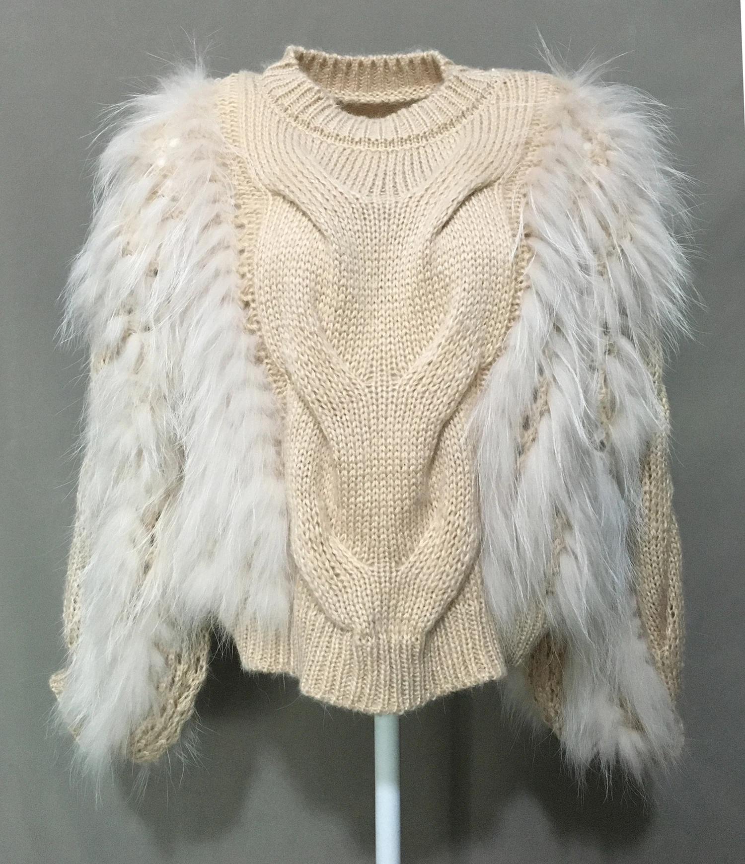 Отзывы о Женский свитер с отделкой из натурального меха енота модный шикарный пуловер для