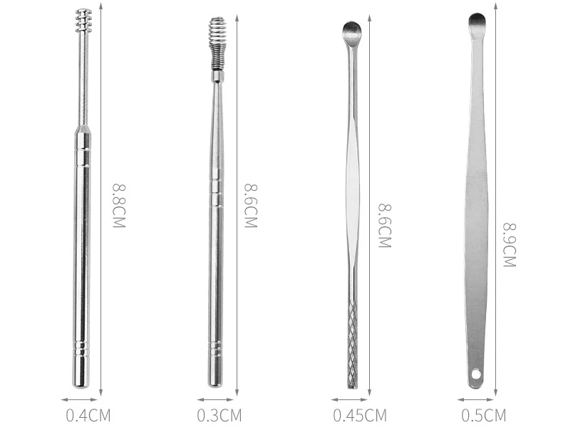 Благодаря тем же видам инструментов, которые используются врачами для удаления шумы (ушной воск), этот набор идеально подходит для тех, кто страдал от нарастания ушного воска.
